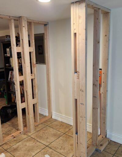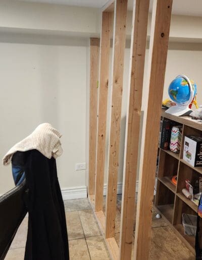 We just completed a project that required us to build a wall to create a bedroom.. We framed and drywalled the walls for a door and closet. They also asked us to trim out a new escape window in the new basement bedroom.